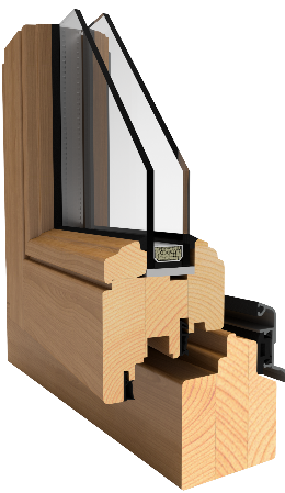 Okna jsou vyrobena z kvalitativně nejlepšího, lamelově lepeného dřeva – borovice, meranti, dub, podrobovaného přísnému technologickému opracování. Díky lehce zaobleným liniím skvěle ladí s každým architektonickým stylem. Navíc jsou vybavena přiléhavou okapnicí chránící vnější stranu okenního křídla a okapnicí rámu s těsněním, odvádějícím srážkovou vodu.